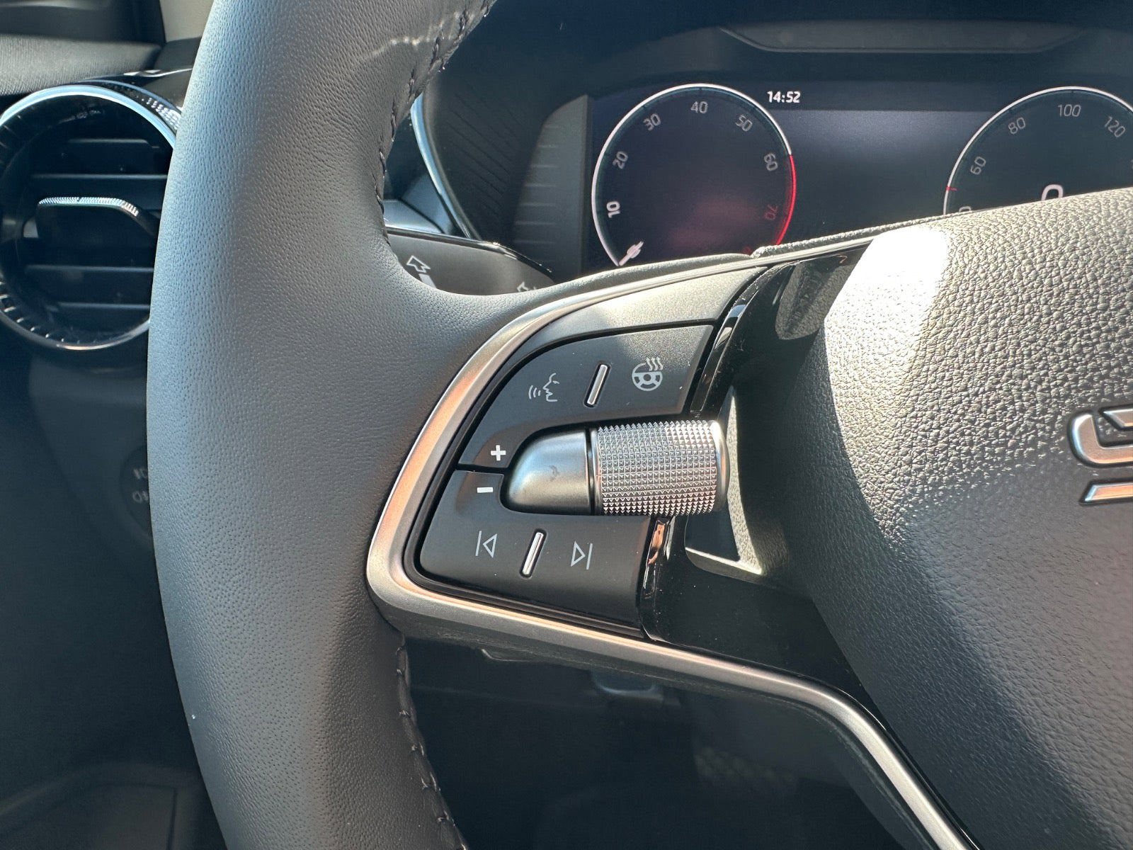 KOMPLET UDSTYRSLISTE:, kørecomputer, bagagerumsdækken, digitalt cockpit, multifunktionsrat, læderrat, stofindtræk, højdejust. førersæde, højdejust. forsæder, justerbar lændestøtte, 15" alufælge, el-klapbare sidespejle m/varme, led kørelys, tågelygter, mørktonede ruder i bag, automatgear, varme i rat, 2 zone klima, nøglefri tænding, fjernb. centrallås, adaptiv fartpilot, aut. nedbl. bakspejl, udv. temp. måler, sædevarme, 4x el-ruder, automatisk start/stop, håndfrit til mobil, musikstreaming via bluetooth, android auto, apple carplay, usb-c tilslutning, regnsensor, parkeringssensor (bag), dæktryksmåler, træthedsregistrering, skiltegenkendelse, isofix, automatisk lys, airbag, antispin, esp, vognbaneassistent, automatisk nødbremsesystem, dab radio |