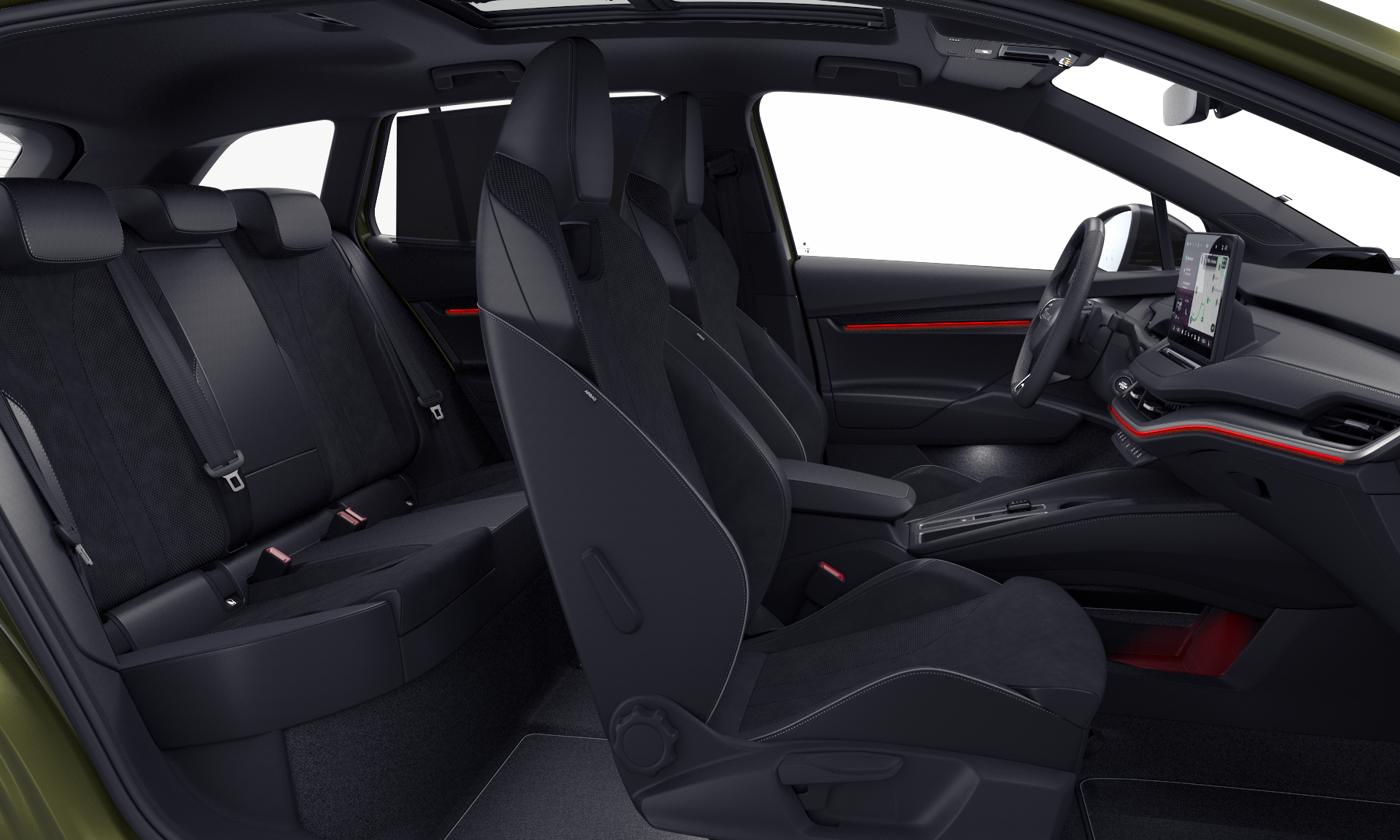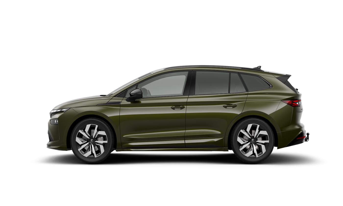 FABRIKSNY DANSK SKODA ENYAQ 85 SPORTLINE MED BL.A. ADVANCEDPAKKE I OLIBO GREEN INKL. 5 ÅR/150.000KM GARANTI - IKKE PARALLEL-IMPORT!